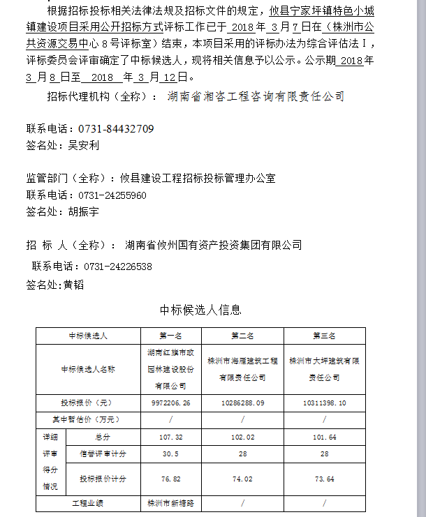 攸縣寧家坪鎮(zhèn)特色小城鎮(zhèn)建設(shè)項(xiàng)目施工招標(biāo)投標(biāo)信息公示表