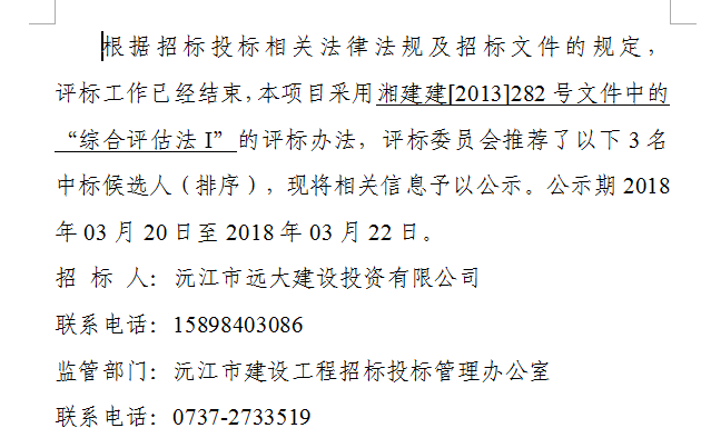 沅江市高新區(qū)服裝產(chǎn)業(yè)園配套公共設(shè)施建筑項目綜合樓室外園林景觀工程中標(biāo)候選人公示
