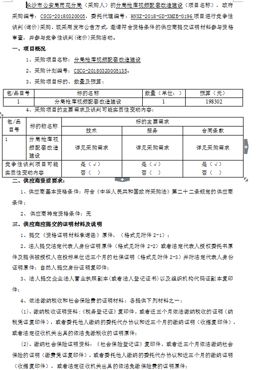 分局槍庫視頻配套改造建設(shè)競爭性談判邀請公告