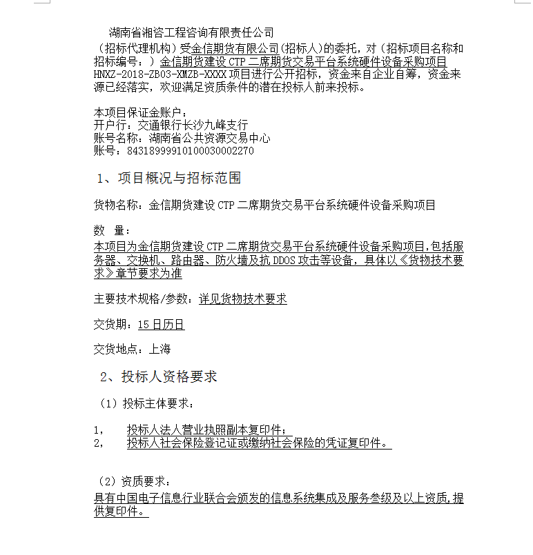 金信期貨建設(shè)CTP二席期貨交易平臺系統(tǒng)硬件設(shè)備采購項目投標(biāo)邀請