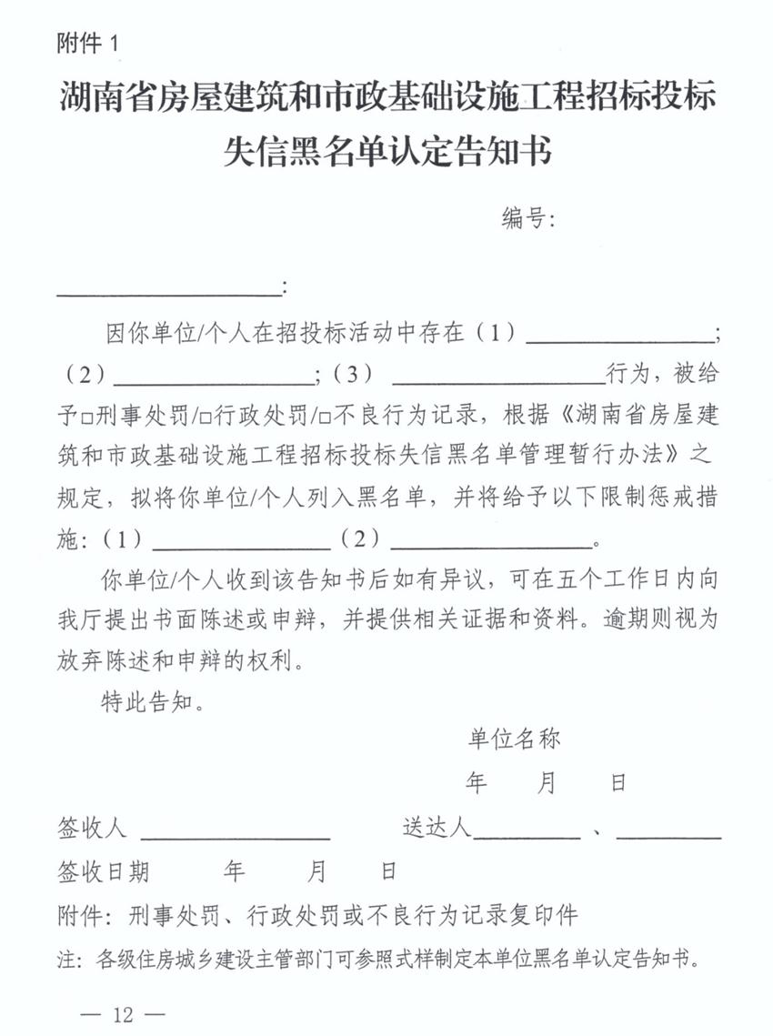 湖南省住房和城鄉(xiāng)建設(shè)廳關(guān)于印發(fā)《湖南省房屋建筑和市政基礎(chǔ)設(shè)施工程施工監(jiān)理招標(biāo)投標(biāo)失信黑名單管理暫行辦法》的通知
