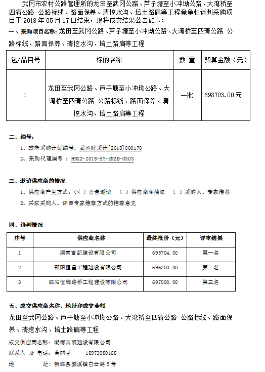 龍?zhí)镏廖鋵?、蘆子塘至小沖坳公路、大灣橋至四清公路 公路標(biāo)線、路面保養(yǎng)、清挖水溝、培土路肩等工程 競(jìng)爭(zhēng)性談判成交結(jié)果公告