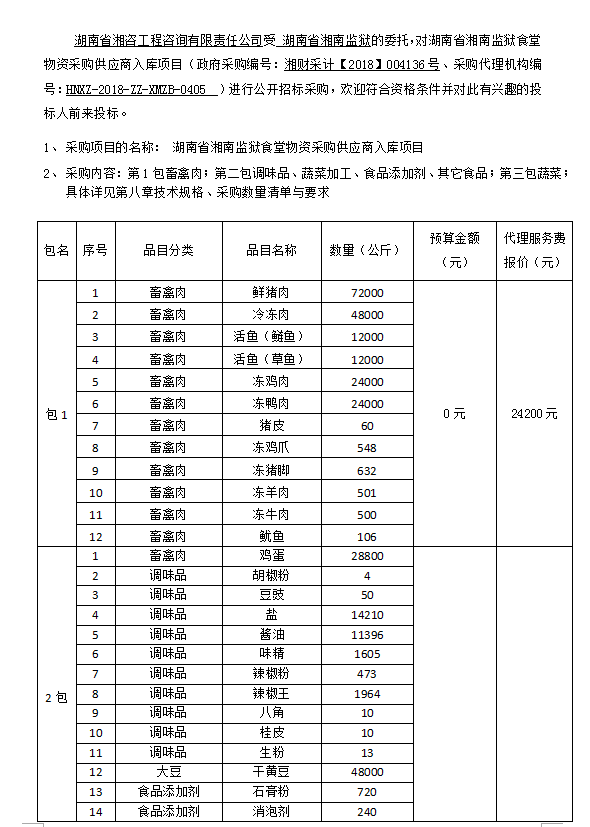 湘南監(jiān)獄2018年6月至2019年5月湘南監(jiān)獄犯人食堂生活物資采購員項(xiàng)目入圍采購公開招標(biāo)公告