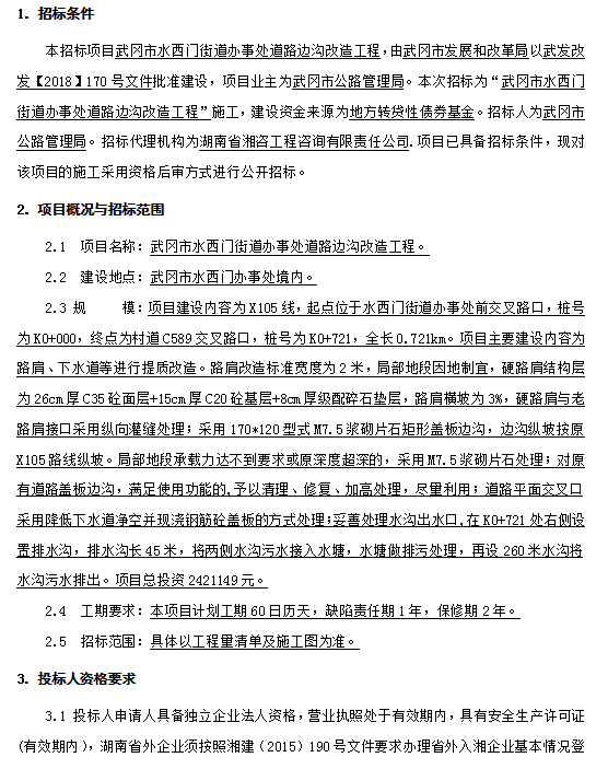武岡市水西門街道辦事處道路邊溝改造工程 施工招標(biāo)公告