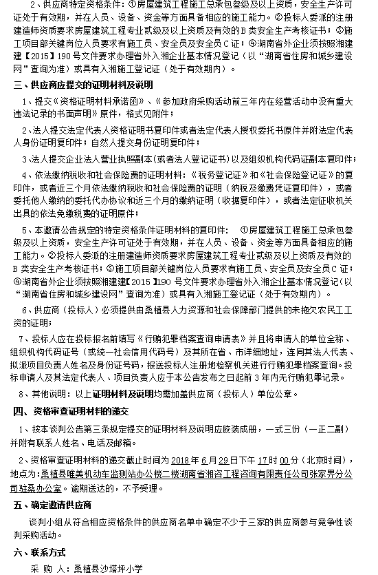 桑植縣沙塔坪小學(xué)教學(xué)樓、學(xué)生宿舍維修改造工程 談判公告