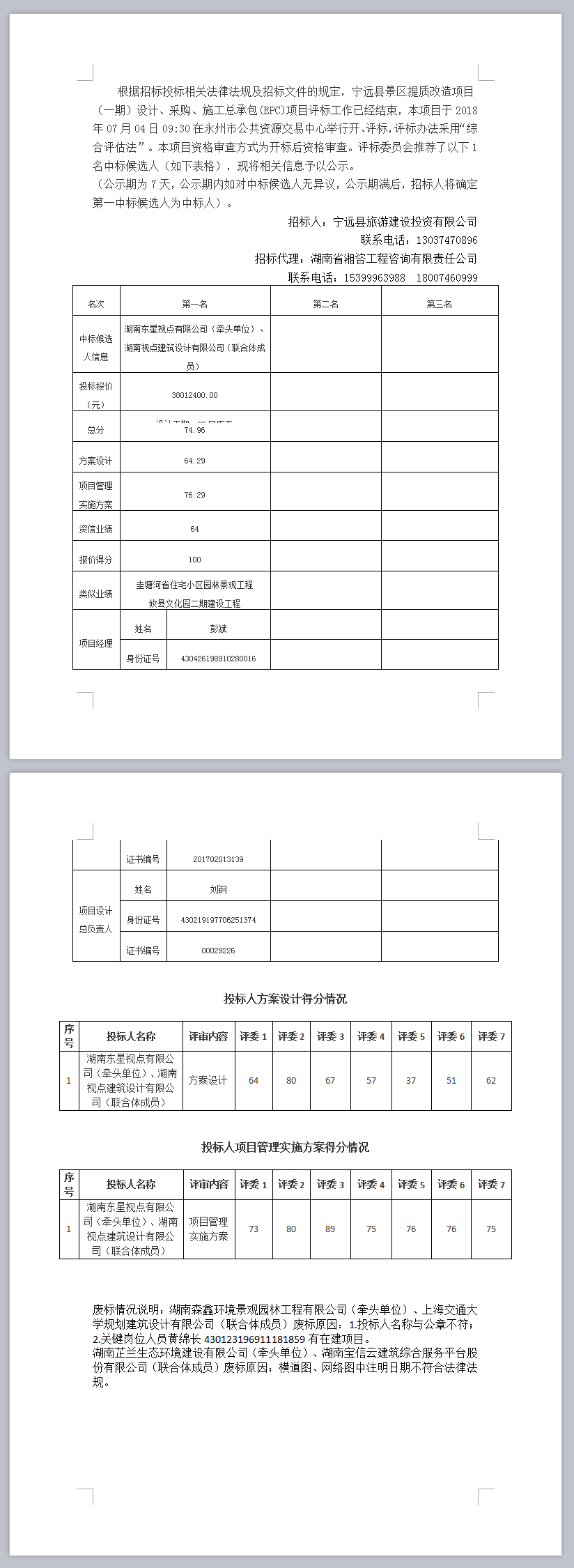 寧遠(yuǎn)縣景區(qū)提質(zhì)改造項目(一期)設(shè)計、采購、施工總承包(EPC)項目中標(biāo)候選人公示