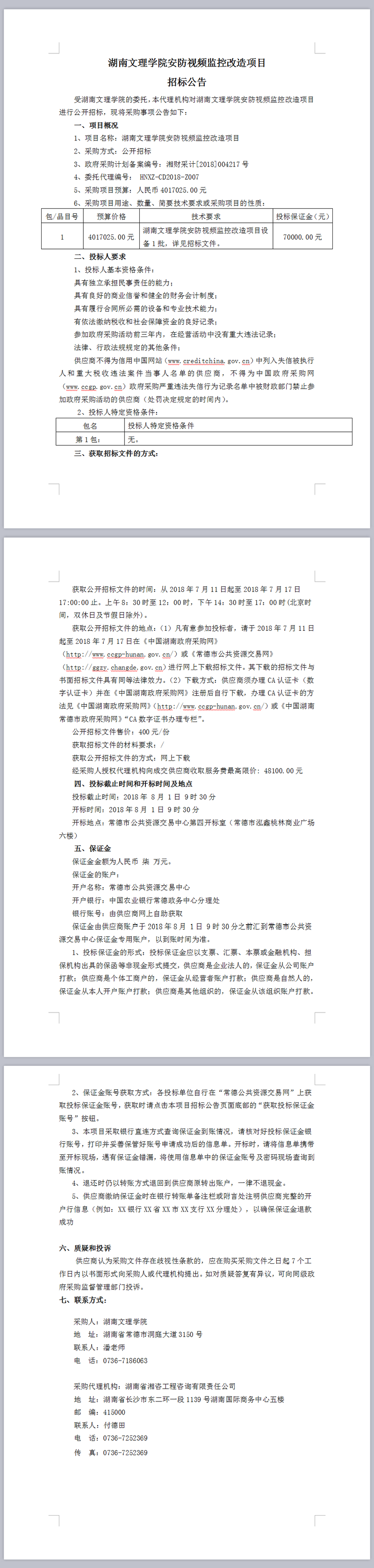 湖南文理學(xué)院安防視頻監(jiān)控改造項目招標(biāo)公告