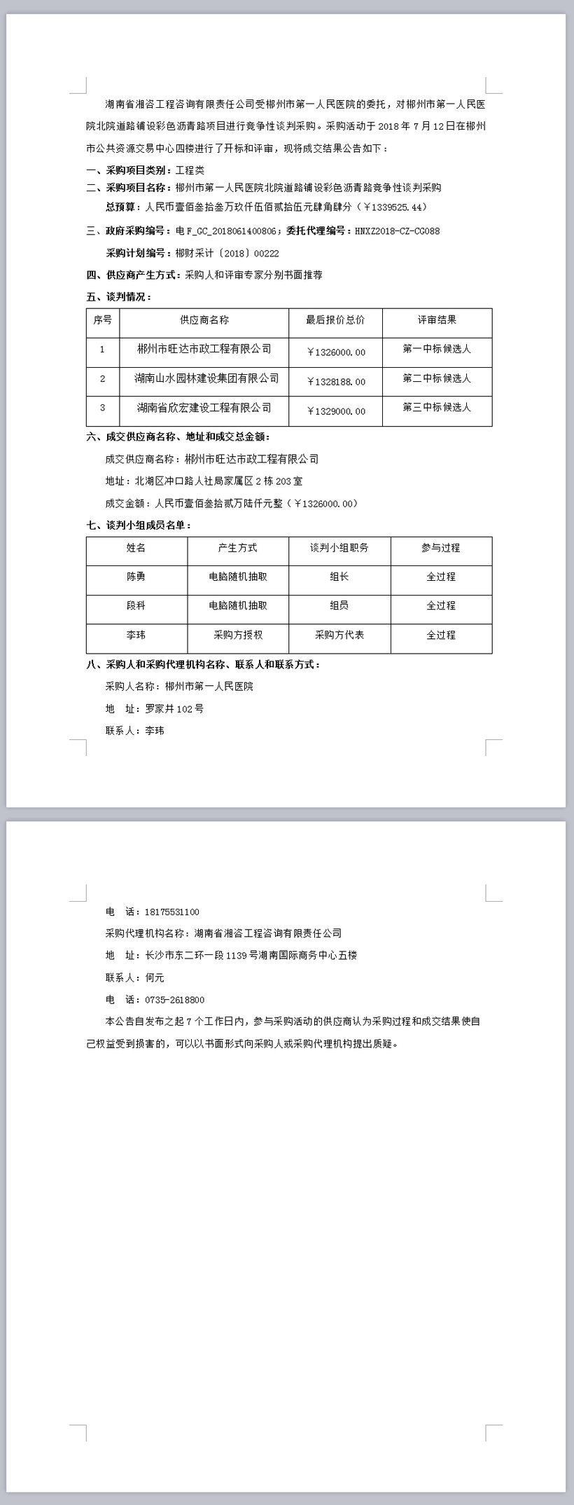 郴州市第一人民醫(yī)院北院道路鋪設彩色瀝青路競爭性談判采購成交公告