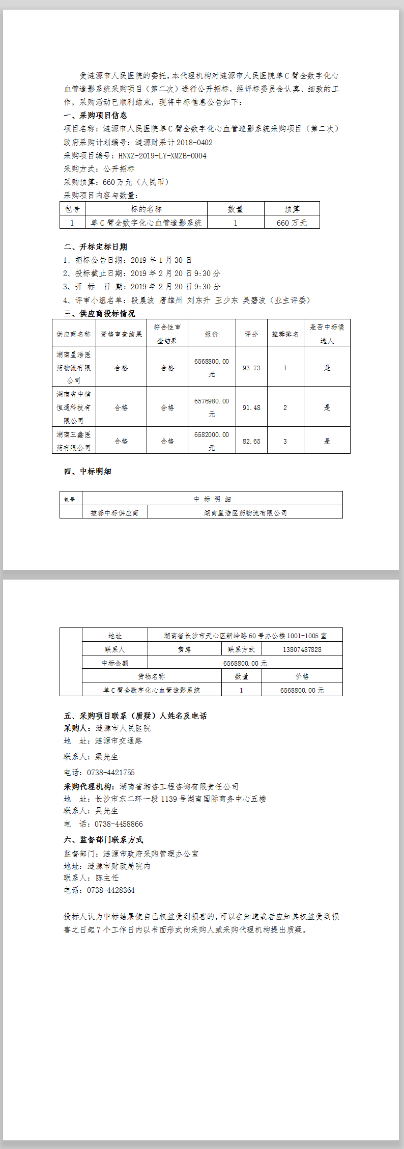 漣源市人民醫(yī)院單C臂全數(shù)字化心血管造影系統(tǒng)采購項目(第二次)中標結果公告