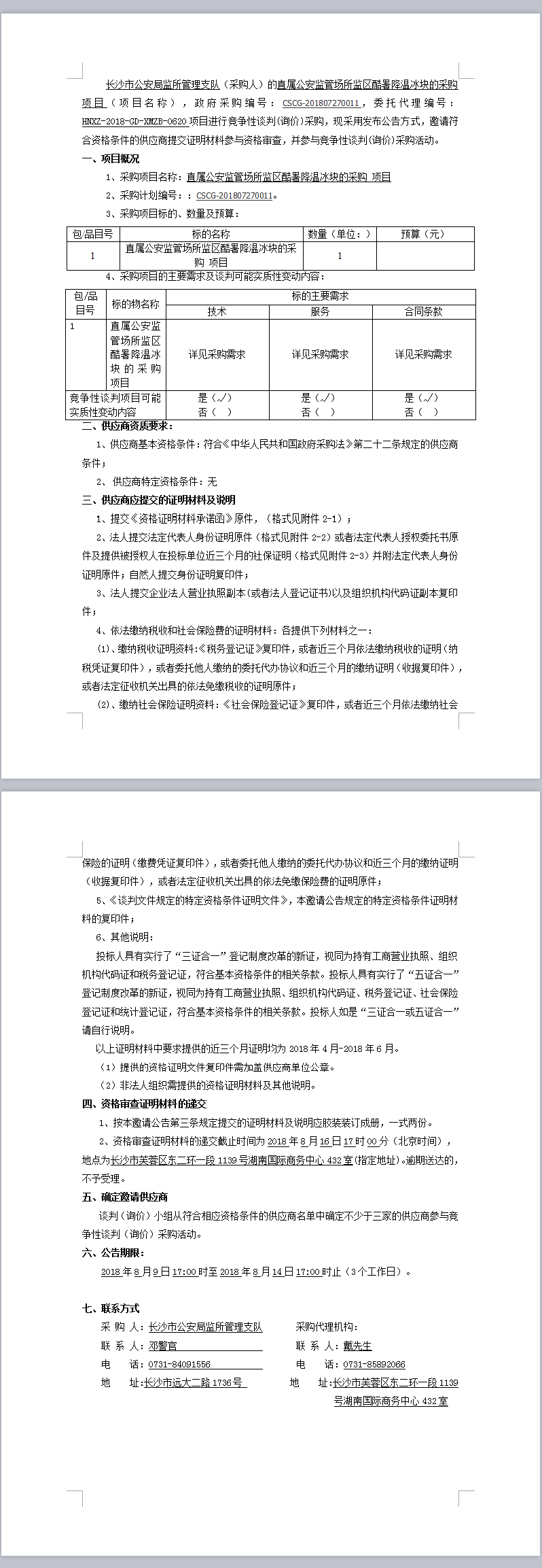 直屬公安監(jiān)管場所監(jiān)區(qū)酷暑降溫冰塊的采購項(xiàng)目競爭性談判邀請公告