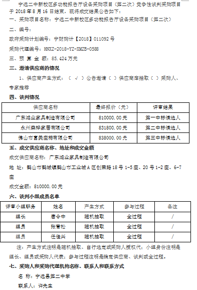 寧遠(yuǎn)二中新校區(qū)多功能報(bào)告廳設(shè)備采購(gòu)項(xiàng)目(第二次)競(jìng)爭(zhēng)性談判成交公告