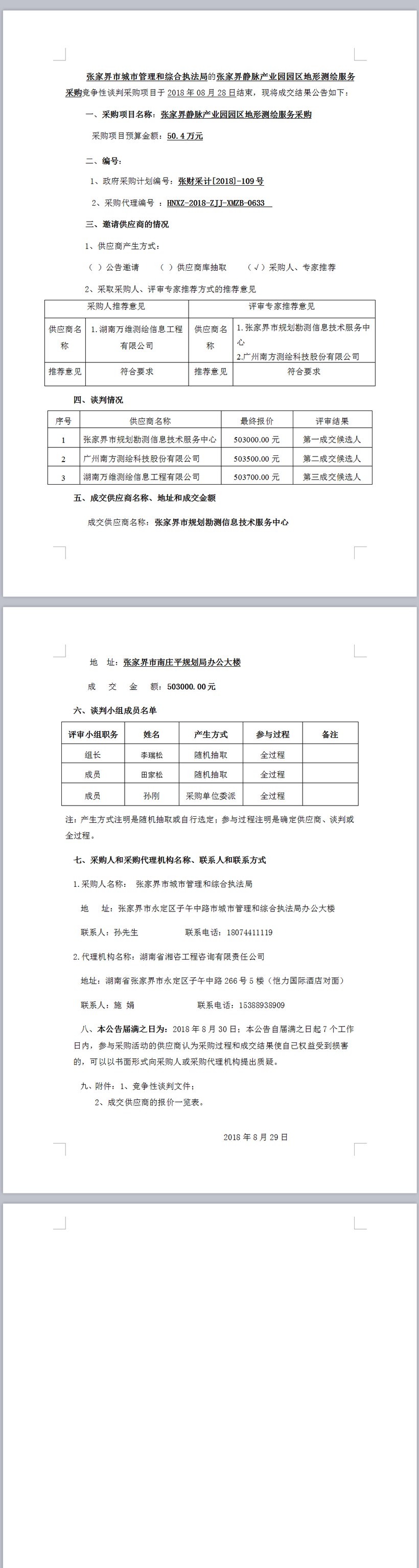 張家界靜脈產(chǎn)業(yè)園園區(qū)地形測(cè)繪服務(wù)采購談判成交公告