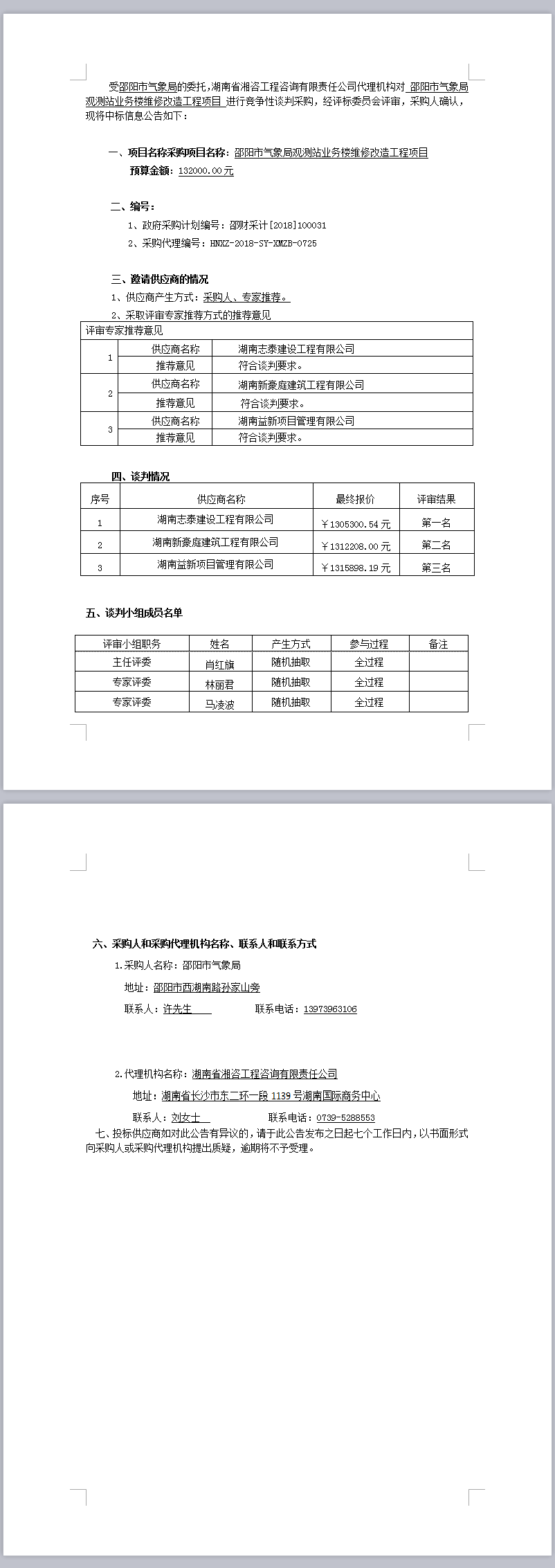 邵陽市氣象局觀測站業(yè)務(wù)樓維修改造工程項目 競爭性談判成交公告