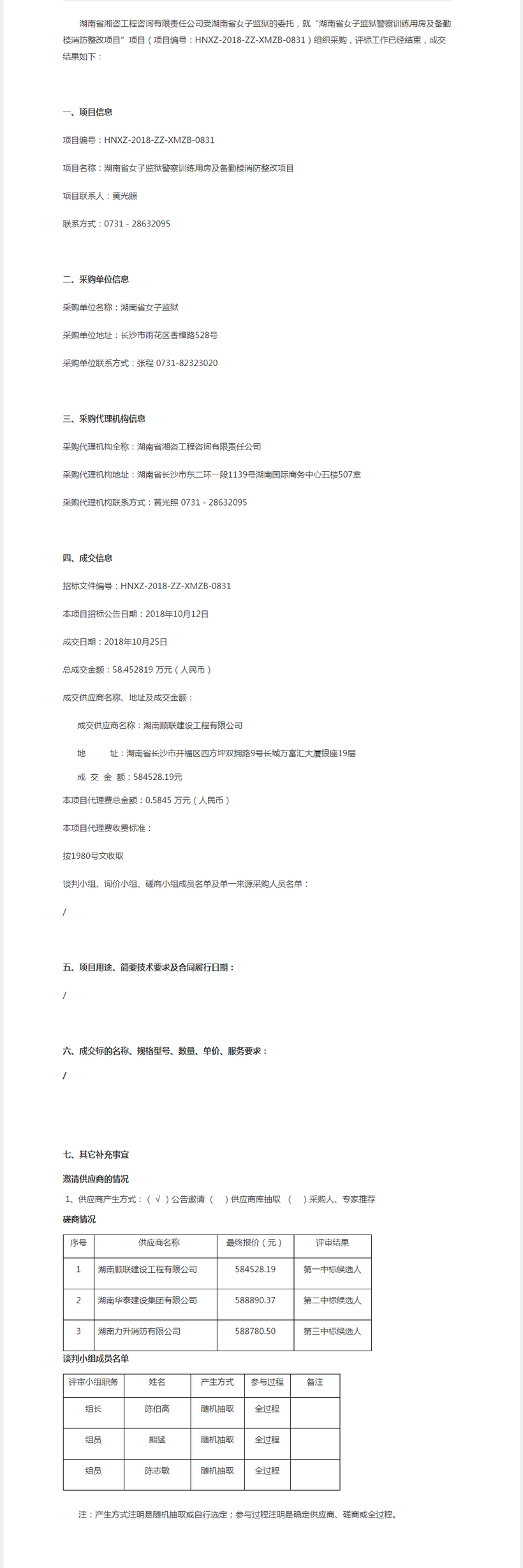 湖南省女子監(jiān)獄警察訓(xùn)練用房及備勤樓消防整改項目成交結(jié)果公告