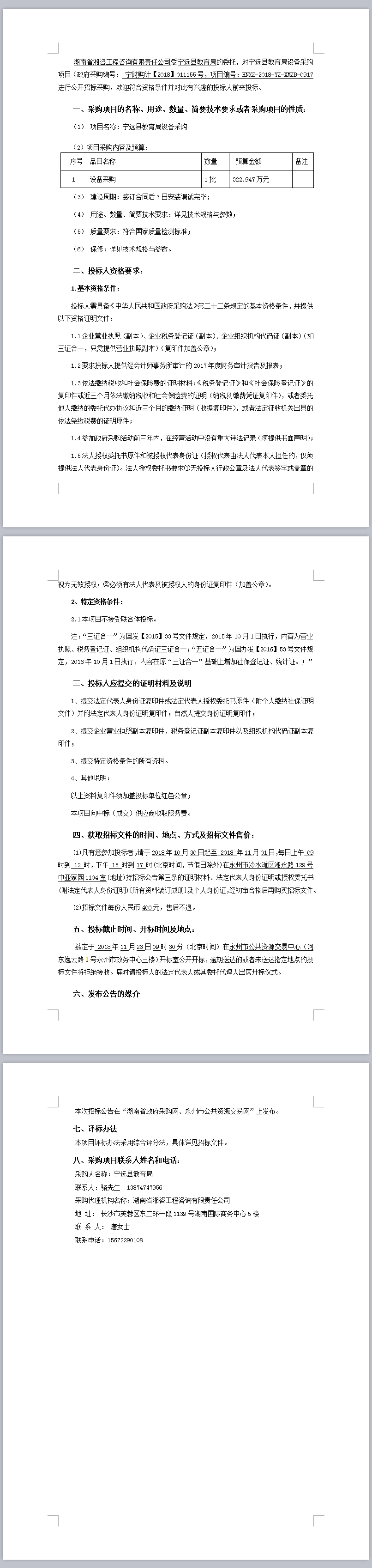 寧遠縣教育局設(shè)備采購項目公開招標公告