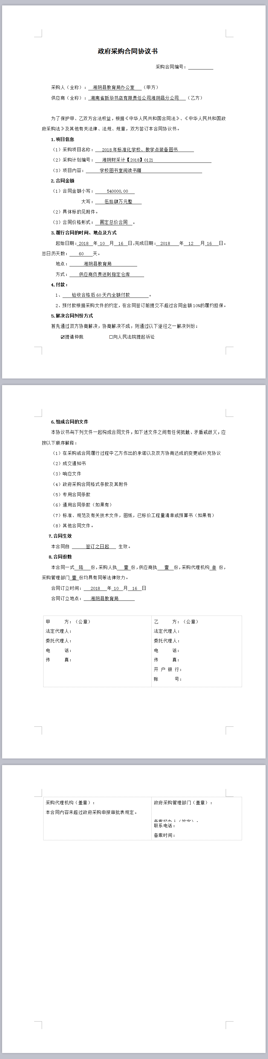 2018年標準化學校、教學點裝備圖書政府采購合同協(xié)議書