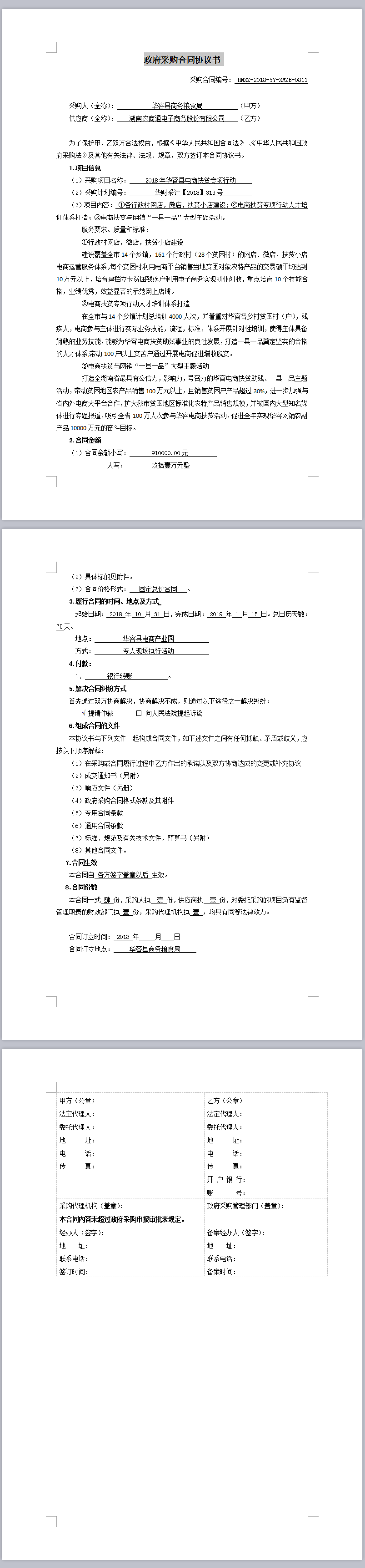 2018年華容縣電商扶貧專項行動政府采購合同協(xié)議書