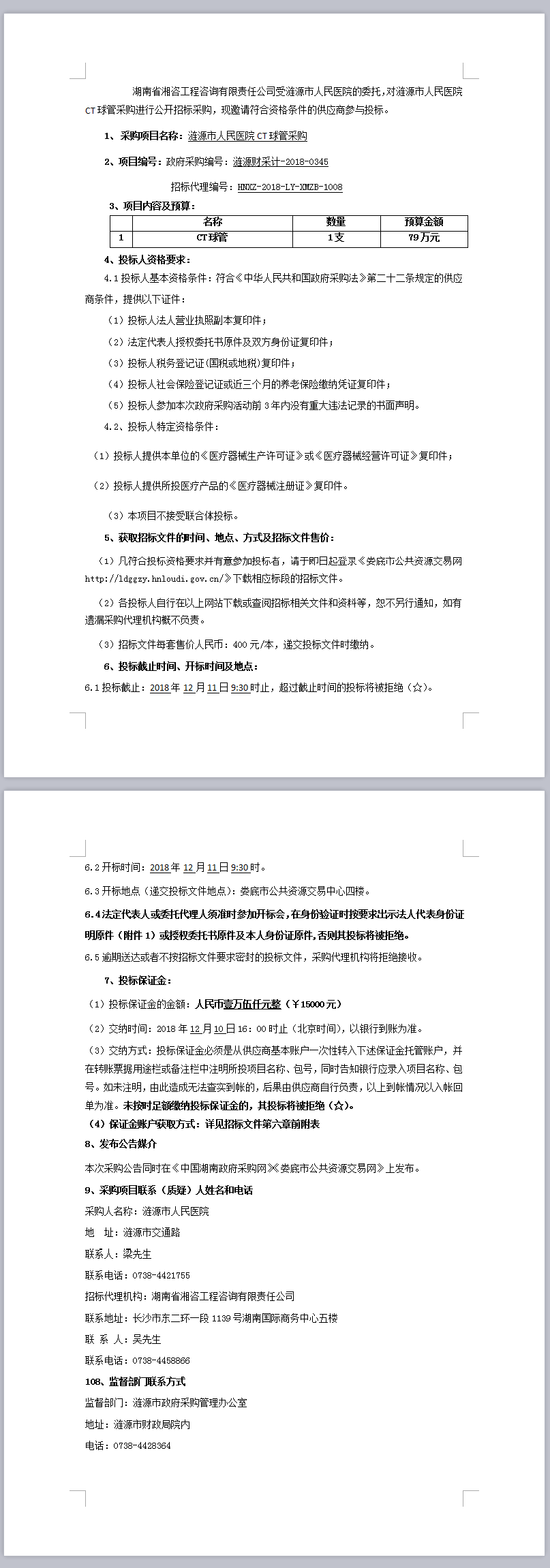 漣源市人民醫(yī)院CT球管采購招標(biāo)公告