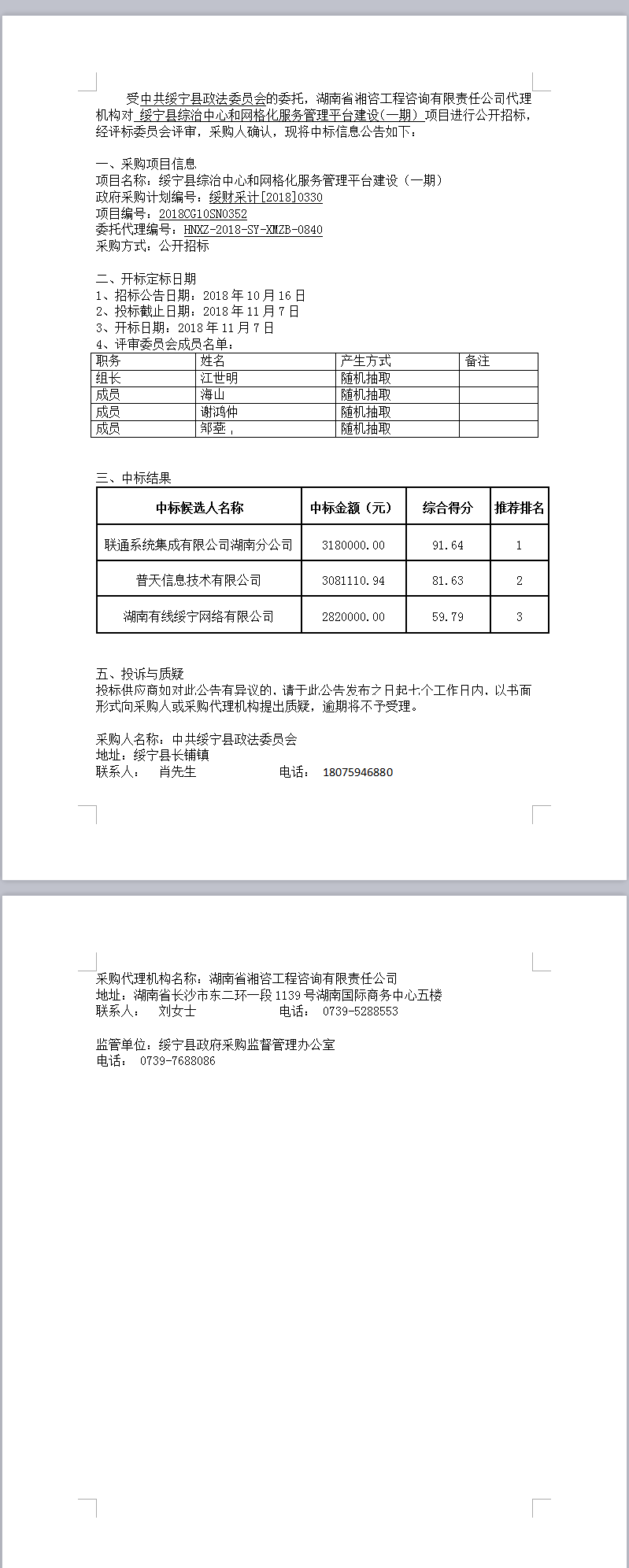 綏寧縣綜治中心和網(wǎng)格化服務(wù)管理平臺(tái)建設(shè)(一期)成交公告