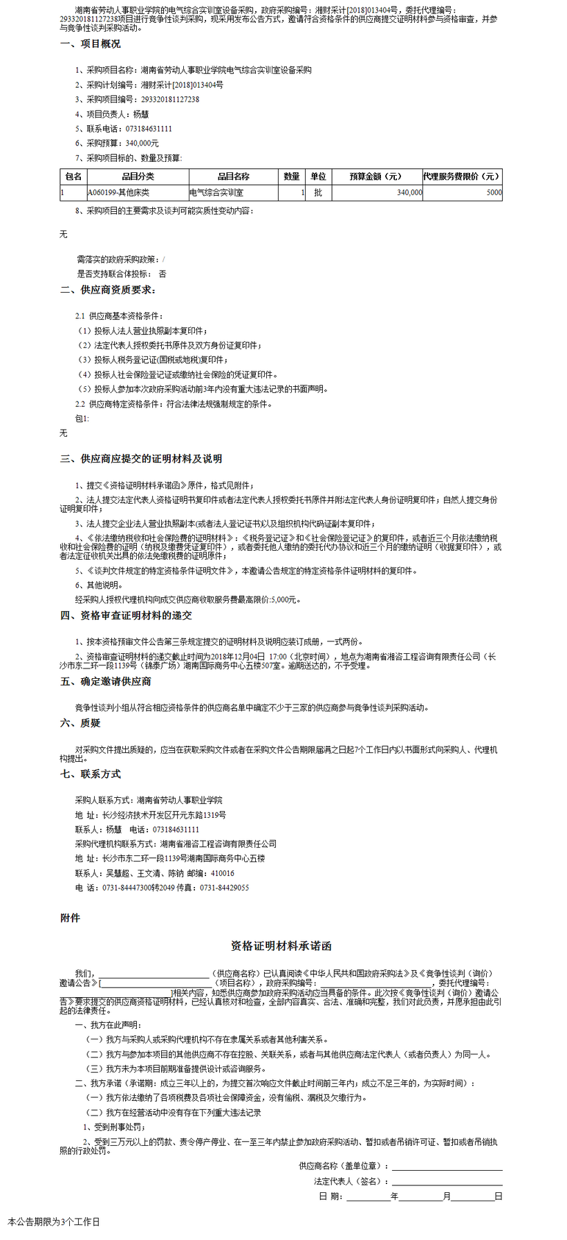 湖南省勞動(dòng)人事職業(yè)學(xué)院電氣綜合實(shí)訓(xùn)室設(shè)備采購(gòu)項(xiàng)目競(jìng)爭(zhēng)性談判邀請(qǐng)公告