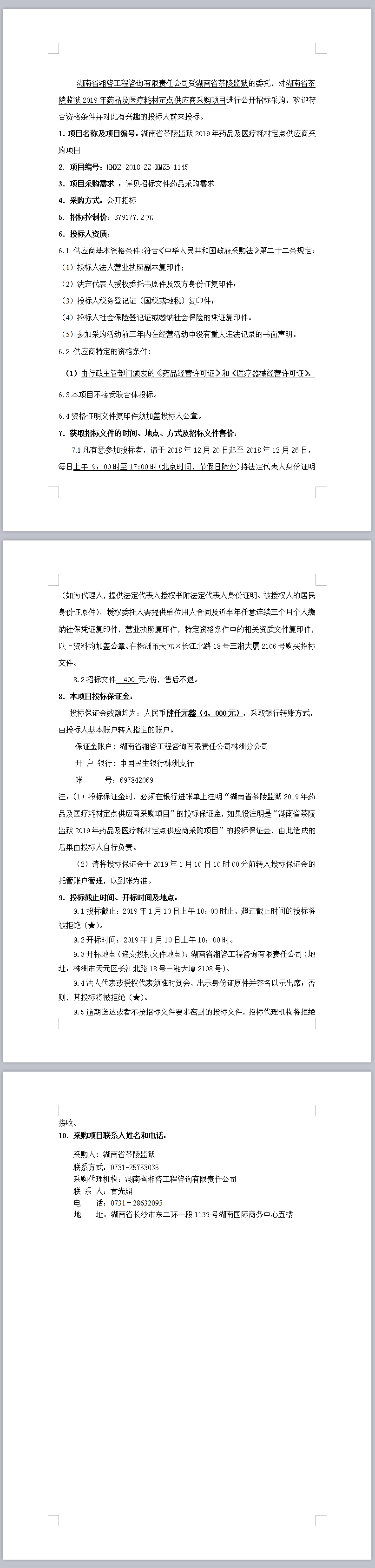 湖南省茶陵監(jiān)獄2019年藥品及醫(yī)療耗材定點供應(yīng)商采購項目投標(biāo)邀請