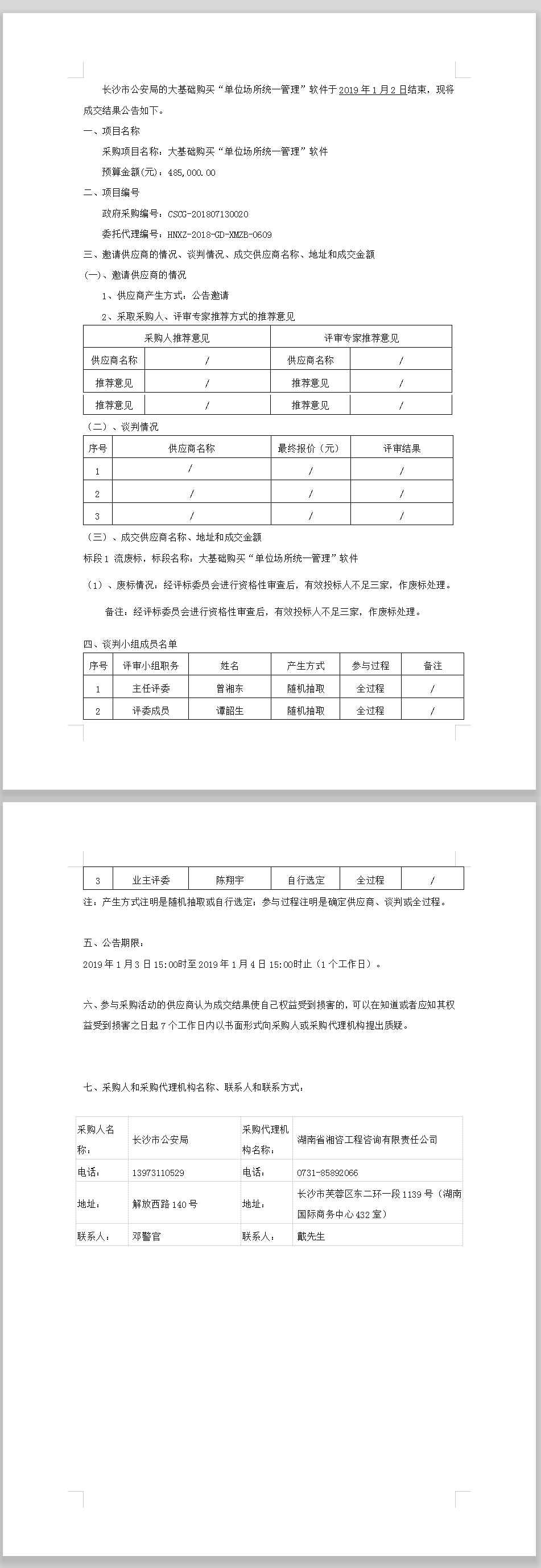 大基礎(chǔ)購買“單位場(chǎng)所統(tǒng)一管理”軟件結(jié)果公告