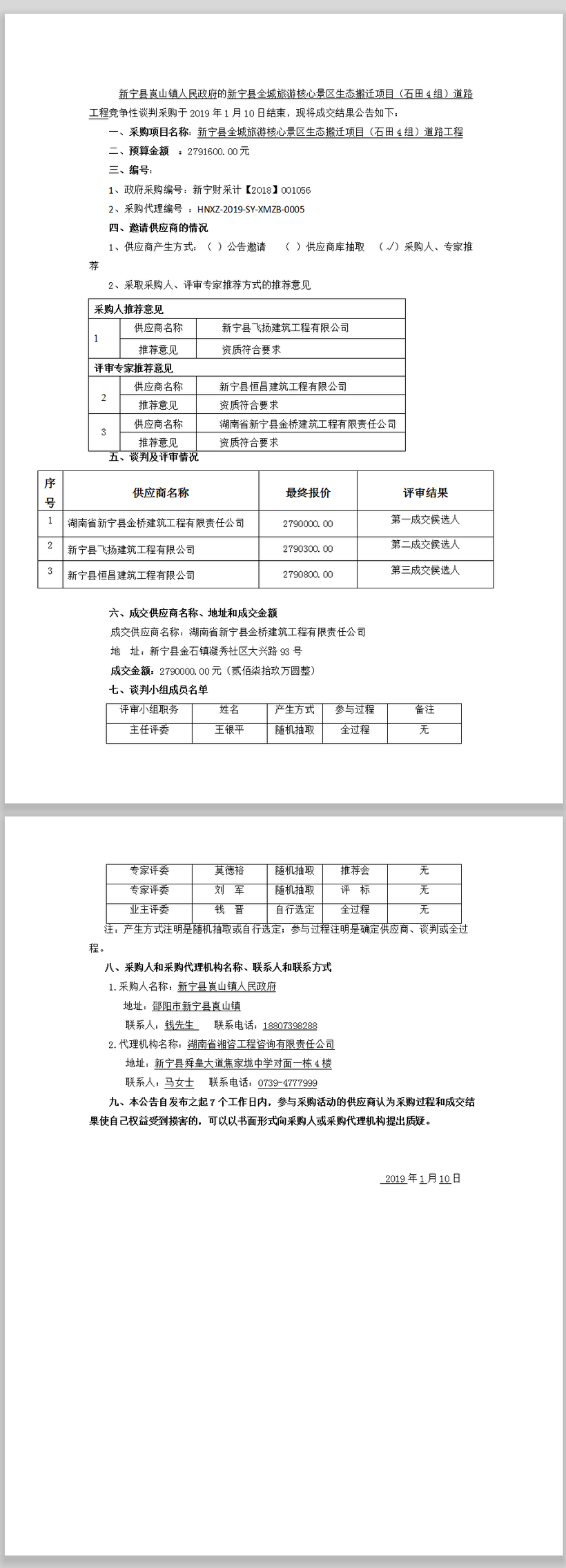 新寧縣全城旅游核心景區(qū)生態(tài)搬遷項(xiàng)目(石田4組)道路工程 競(jìng)爭(zhēng)性談判成交結(jié)果公告