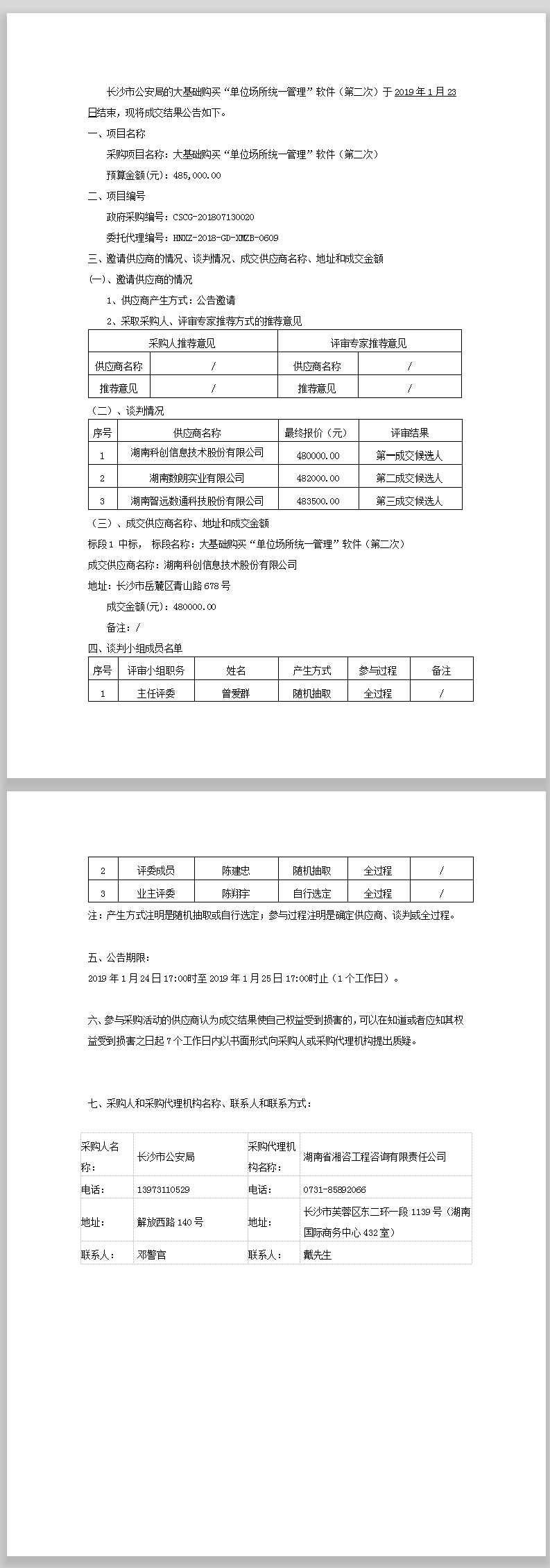 大基礎(chǔ)購買“單位場所統(tǒng)一管理”軟件(第二次) 結(jié)果公告