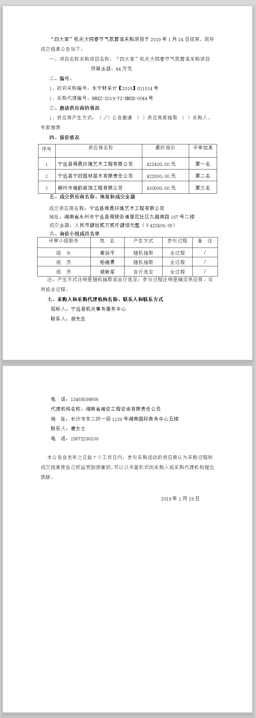 “四大家”機關大院春節(jié)氣氛營造采購項目 詢價采購成交結果公告