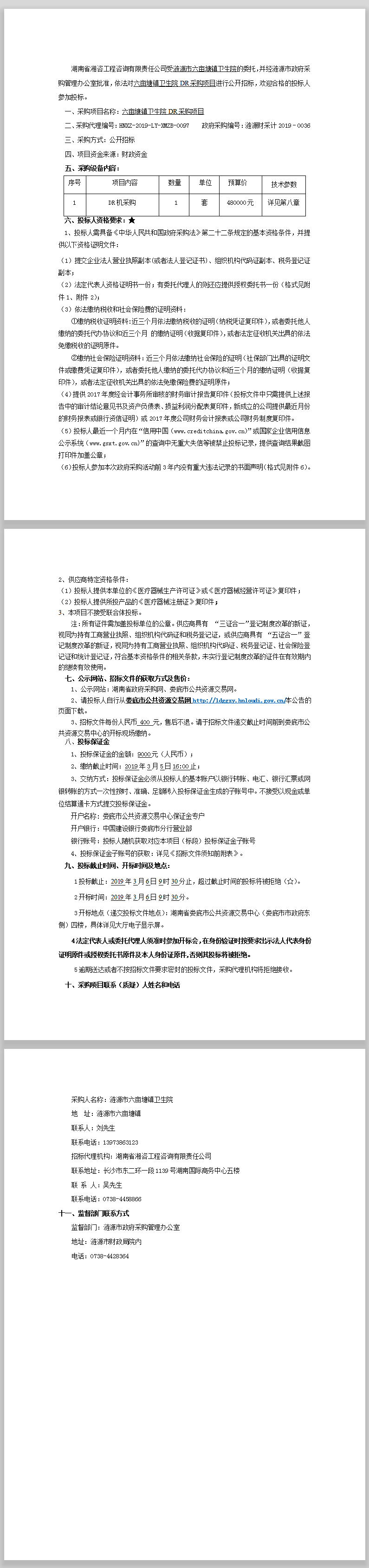 六畝塘鎮(zhèn)衛(wèi)生院DR采購項(xiàng)目招標(biāo)公告