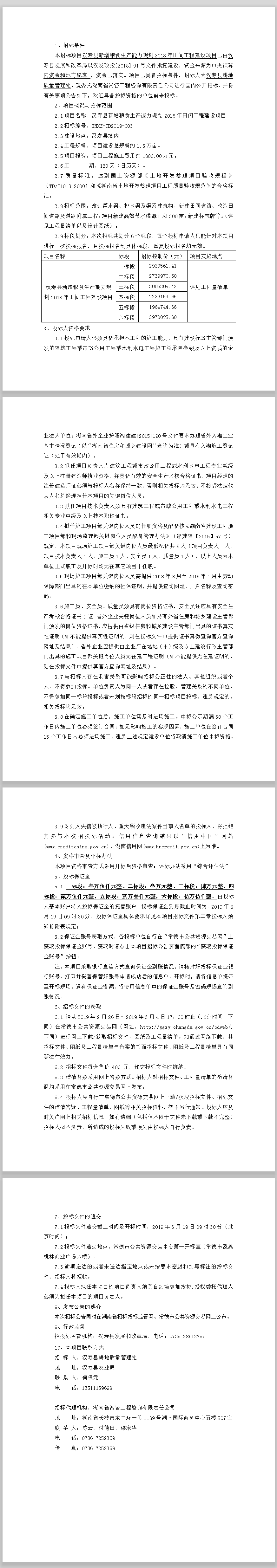 漢壽縣新增糧食生產能力規(guī)劃2018年田間工程建設項目 招標公告