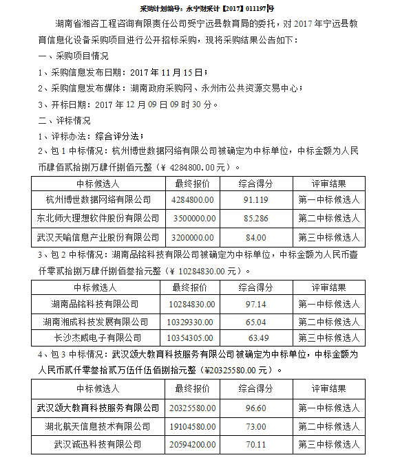 2017年寧遠縣教育信息化設(shè)備采購項目中標公告