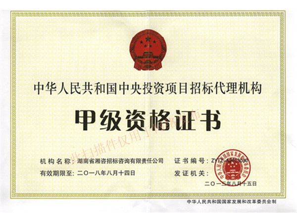 熱烈慶祝我司獲得國(guó)家發(fā)改委中央投資項(xiàng)目招標(biāo)代理機(jī)構(gòu)甲級(jí)資格