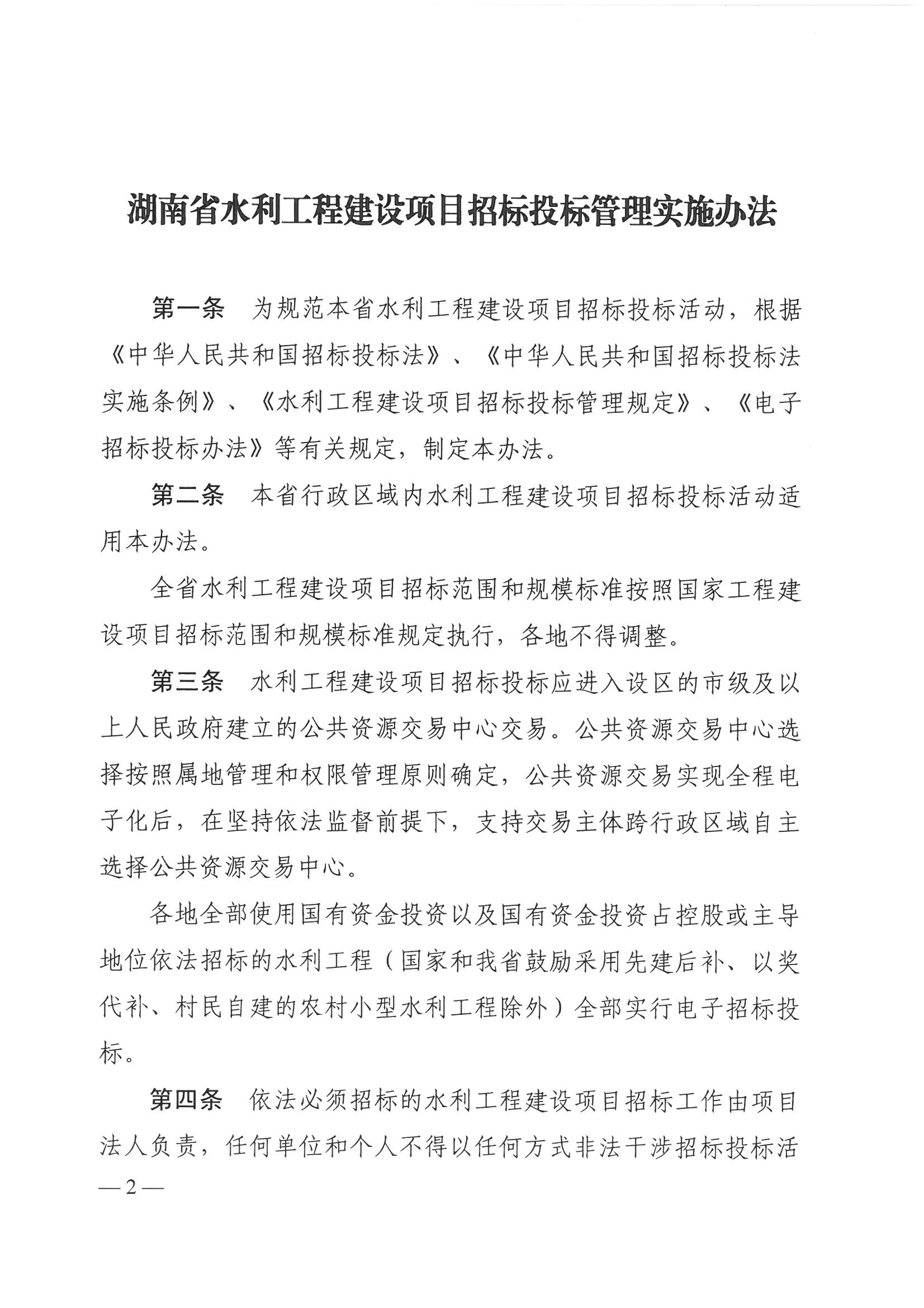 關于印發(fā)《湖南省水利工程建設項目招標投標管理實施辦法》的通知 湘水辦【2017】113號