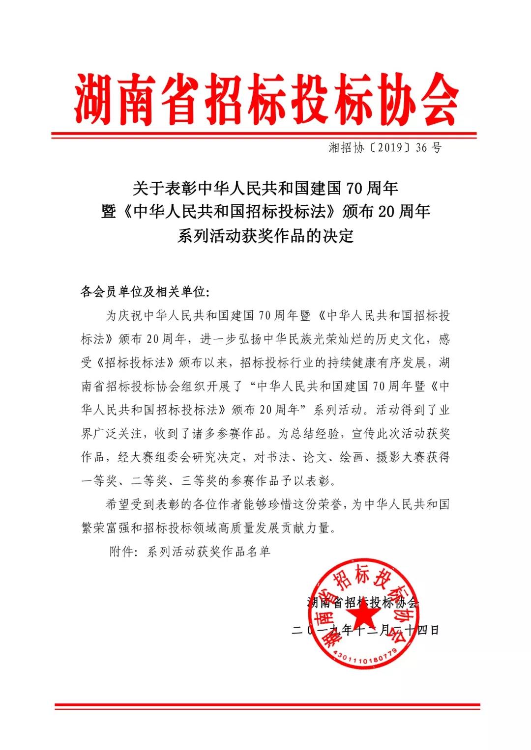 【喜訊】熱烈祝賀我司王佳勇榮獲湖南省招標(biāo)投標(biāo)協(xié)會(huì)書法大賽二等獎(jiǎng)