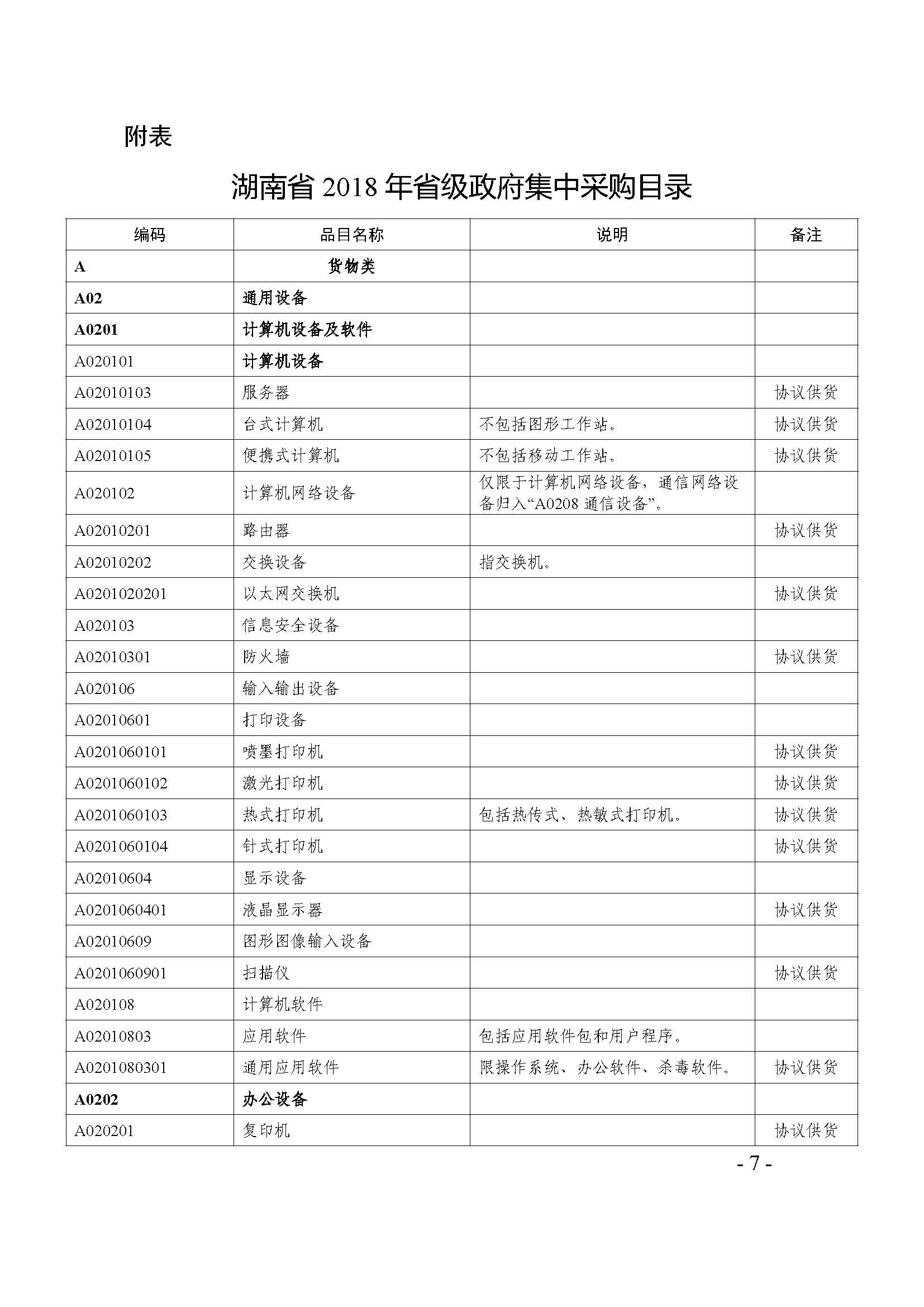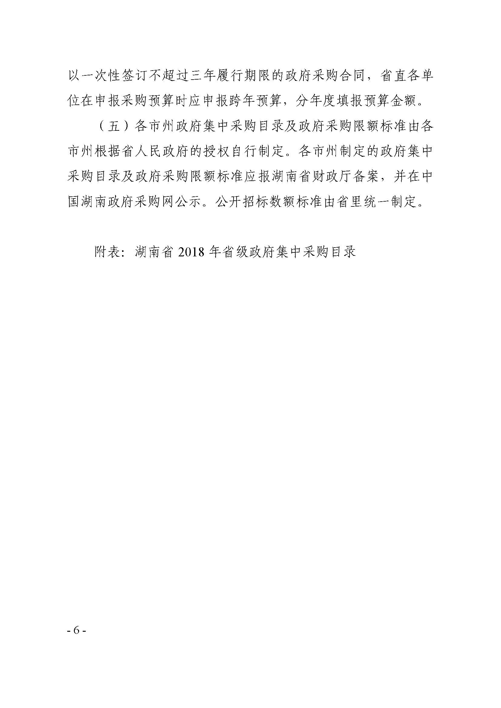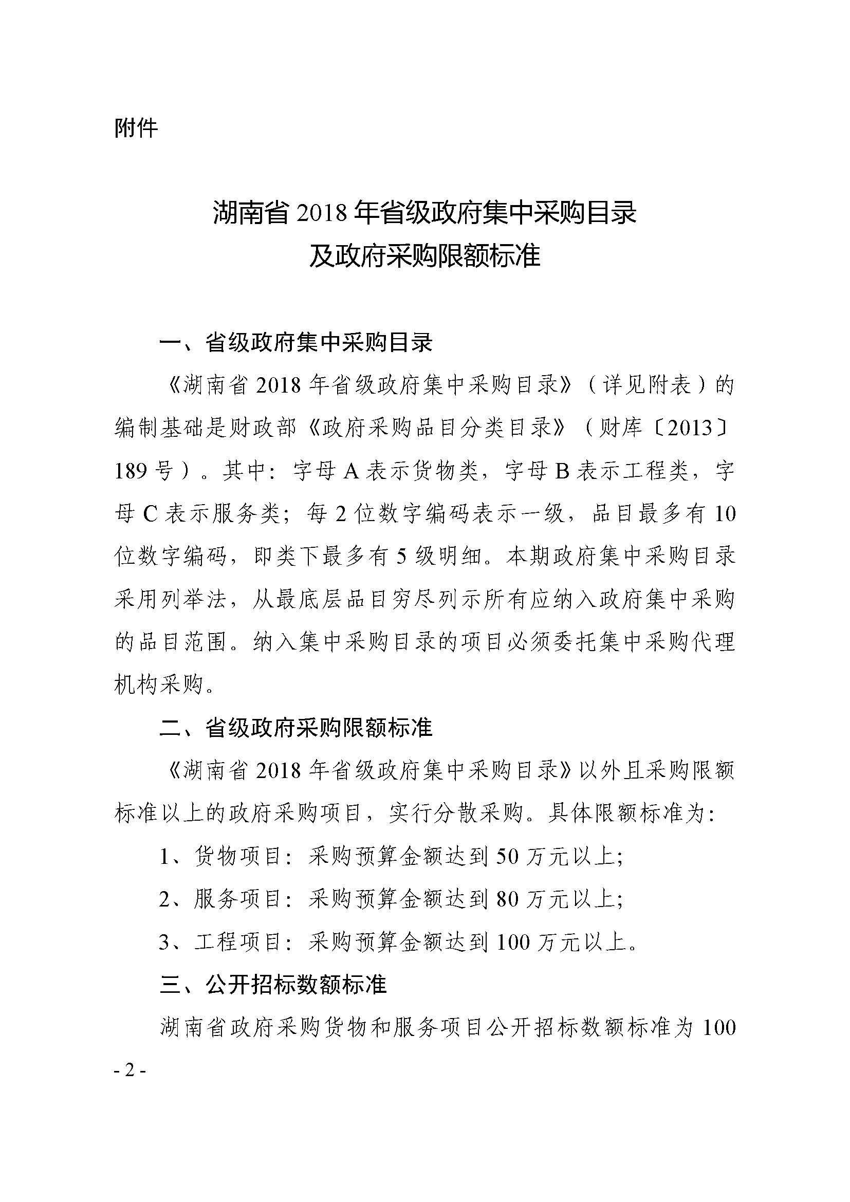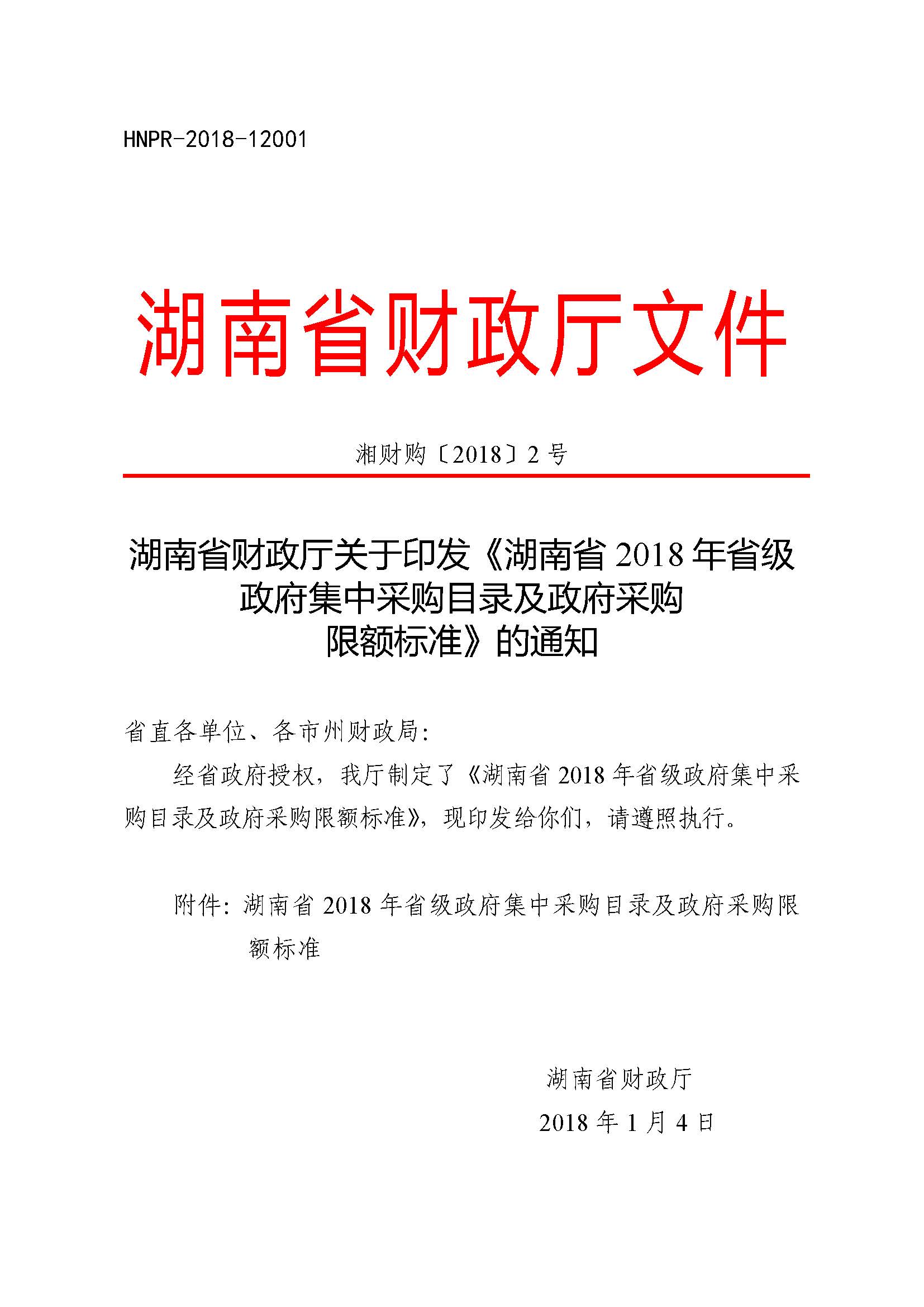 湖南省財(cái)政廳關(guān)于印發(fā)《湖南省2018年省級(jí)政府集中采購目錄及政府采購 限額標(biāo)準(zhǔn)》的通知