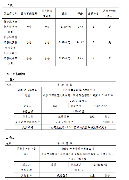 漣源市人民醫(yī)院全自動(dòng)血細(xì)胞分析儀、全自動(dòng)血凝分析儀采購(gòu)中標(biāo)結(jié)果公告